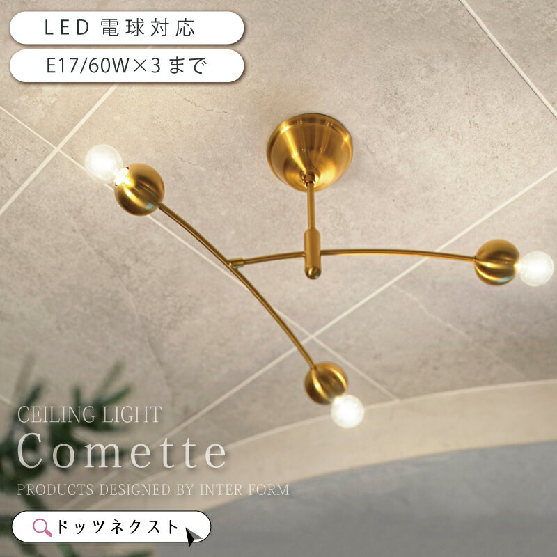 【10%OFFクーポン★23:59まで】 シーリングライト インターフォルム ガラス おしゃれ 照明器具 天井照明 シーリングランプ 照明 3灯 led対応 ダイニング カウンター キッチン 玄関 インテリア Comette コメット LT-4372 LT-4373 LT-4375 新生活 引越
