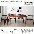 組立設置付き 北欧デザイナーズダイニングセット Spremate シュプリメイト 5点セット(テーブル+チェア4脚) スタッキングチェア W150