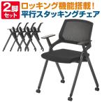 法人様限定 平行スタッキングチェア 2脚セット 肘付き ミーティングチェア ロッキング機能搭載 キャスター付き メッシュ 会議椅子 幅606×奥行555×高さ850mm
