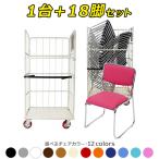 ノーマルカゴ台車 カゴ車 スタッキングチェア 18脚セット チェア耐荷重約150kg 会議イス 会議椅子 ミーティングチェア パイプチェア パイプイス ロールパレット