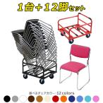 ミーティングチェア 12脚セット+収納台車 カラー選択可能 会議イス 会議椅子 スタッキングチェア パイプチェア パイプイス パイプ椅子 収納台車 チェアポーター