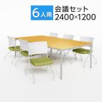 法人様限定 6人用 会議セット 会議テーブル 2400×1200 + 平行スタッキングチェア プレソナ 6脚