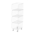 スタッキングワゴン 4段 ワゴン キャスター付き バスケット 収納 スリム キッチン収納 スチール 高さ95 かご サイドワゴン トローリー ランドリーバスケット キッチン ボックス ランドリー収納 シンプル おしゃれ 薄型 ホワイト コンパクト 省スペース 一人暮らし ワンルーム