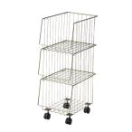 スチールワイヤーバスケットワゴン3段 キャスター付き スタッキング かご カゴ ラック 収納 軽量 akb-438 [lt]