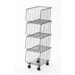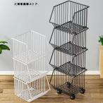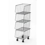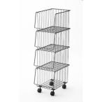 スチールワイヤーバスケットワゴン4段 キャスター付き スタッキング かご カゴ ラック 収納 軽量 akb-439 [lt]