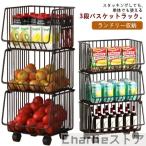 キャスター付き キッチンストッカー ワイヤーバスケット バスケットラック 調味料 3段 スタッキング おしゃれ 台所 ランドリーワゴン 野菜 収納