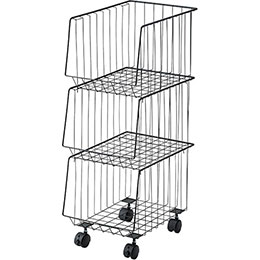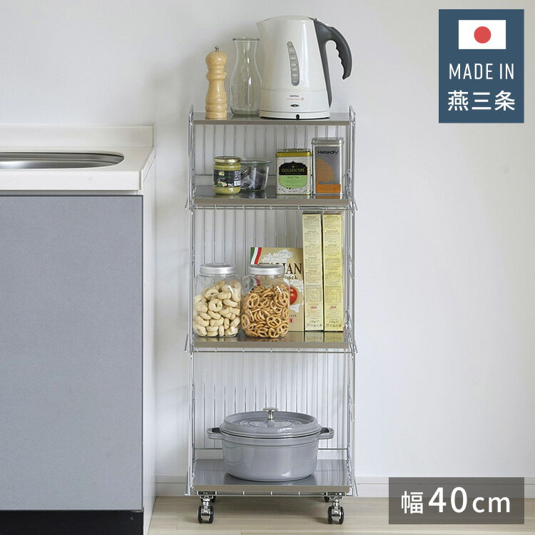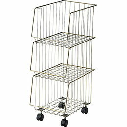 下村企販 日本製 燕三条 ステンレス棚のスタッキングワゴン 3段 キッチンワゴン ストッカー キッチンラック バスケット かご キャスター 頑丈 ステンレス スタッキングワゴン【送料無料】