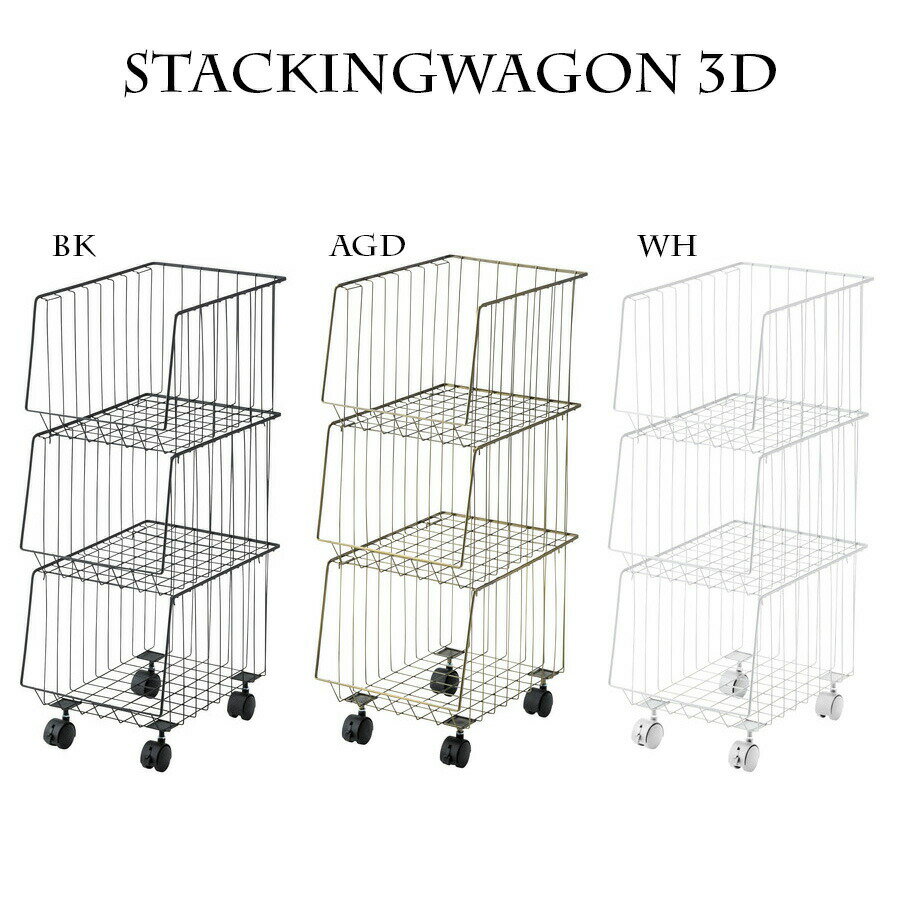カゴ ワゴン ラック キャスター付 マルチ バスケット 3段タイプ 収納 洗濯物 小物 衣類 サニタリー ランドリー キッチン アイアン スタッキングワゴン おしゃれ