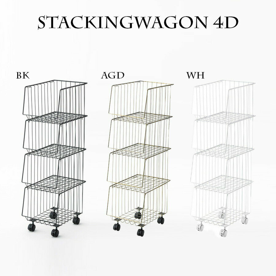 ワゴン キャスター付き AKB-439 4D スタッキングワゴン 4段 東谷 収納 カゴ 籠 ランドリー ラック シェルフ 棚 洗面所 タイヤ付き リビング ナチュラル コンパクト バスケット 移動 便利 スタイリッシュ カジュアル 積み重ね タオル 黒 金 ブラック ゴールド おしゃれ ワゴン