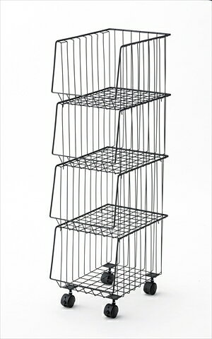 スタッキングワゴン 幅26.5cm 4段 ストッカー キャスター付 ( ワイヤーバスケット ワゴン ラック バスケット 収納 衣類収納 雑誌 書類 衣類 小物収納 小物入れ スタッキング ボックス 四段 かご キャスター スチール製 スチール )【39ショップ】