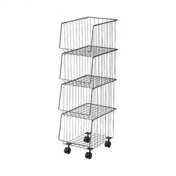 スタッキングワゴン 幅26.5cm 4段 ストッカー キャスター付 ( ワイヤーバスケット ワゴン ラック バスケット 収納 衣類収納 雑誌 書類 衣類 小物収納 小物入れ スタッキング ボックス 四段 かご キャスター スチール製 スチール )