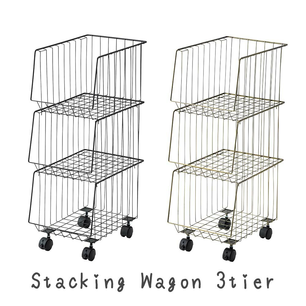 スタッキングワゴン3段 キッチンワゴン 収納ワゴン バスケット バスケットワゴン ブラックゴールド 黒 金色 キッチン収納ワゴン キッチン収納 キッチンラック キッチンストッカー ランドリーワゴン ランドリー収納 ラック オープンラック 収納棚