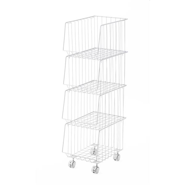 スタッキングワゴン 幅26.5cm 4段 ストッカー キャスター付 ( ワイヤーバスケット ワゴン ラック バスケット 収納 衣類収納 雑誌 書類 衣類 小物収納 小物入れ スタッキング ボックス 四段 かご キャスター スチール製 スチール )【3980円以上送料無料】