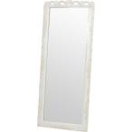 スタンドミラー 全身姿見鏡 約幅70cm アンティークホワイト 木製 彫刻付き ヴィオレッタシリーズ ベッドルーム 寝室