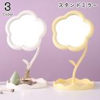 スタンドミラー 卓上ミラー 化粧鏡 メイクミラー トレイ付き 小物置き 角度調整可能 取り外し可能 お花 フラワー型 小物入れ付き お化粧直し ヘアー
