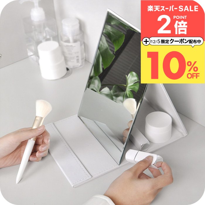 \5日10%OFFクーポン/ ミラー 持ち運び 折りたたみ 18.2x25.4cm [ナチュメイプル 卓上ミラー ホワイト Lサイズ ] 角度調整&メイクがしやすい大きい鏡面 卓上鏡 スタンドミラー コンパクトで持ち運びにも◎ 誕生日プレゼント 女友達 女性