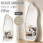 10%OFF期間限定★レビュー特典・スタンドミラー ウェーブ 鏡 ミラー 全身鏡 ノンフレーム 立て掛け 姿見鏡 おしゃれ 化粧鏡 不規則 玄関鏡 大型 2way 160cm