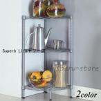 収納ラック コーナーラック オープンラック ウォールシェルフ 2段 メタルラック パイプ フリーラック 三角 角 収納棚 組み立て簡単 リビング 居間