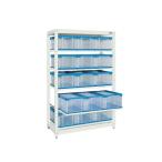 本体 サカエ マルチプルラック コンテナ収納タイプ(単体) 5段中コンテナ(40BTM) 幅1250×奥行570×高さ1950mm 収納ボックス SKE-MR1940B2L