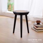 スツール 木製 丸椅子 おしゃれ クッション 玄関 キッチン 北欧 ナチュラル 千鳥格子 無垢 円形 天然木 チーク ラウンドスツール