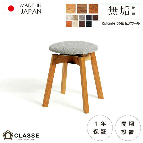 【期間限定10%OFF】 35cm スツール 回転 リビング 無垢 日本製 1年保証 木製 開梱設置 クラッセ ロタンテ 椅子