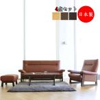 ソファ4点セット センターテーブル ソファー 1P 2P スツール 木脚 革張り AS-0159
