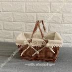 ピクニックバスケット籐かご ハンドル 持ち手 運動会 かご ピクニック かご バスケット 籐かご 手編み かご フルーツバスケット 小物収納 オシャレ