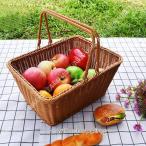 ナチュラル フルーツバスケット ピクニックバスケット オシャレ 籐かご 収納バスケット お菓子入れ 果物入れ フルーツ入れ パン入れ 収納かご 整理かご 持ち手