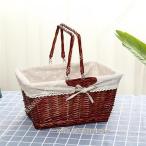 ピクニックバスケット パンバスケット 籐かご ハンドル付き 持ち手 小物入れ 収納バスケット かご お菓子 果物 ピクニック 野菜 フルーツ パン 運動会