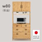 電子レンジが置ける食器棚 キッチンボード 80 レンジ台 キッチン 収納 日本製 パイン 無垢 板扉 引出 木製