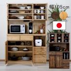 食器棚 収納 完成品 105 木製 パイン材 キッチンボード キッチン収納 カップボード ガラス 開き扉