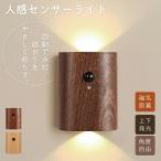 人感センサーライト ウォールライト 室内 玄関 木製 USB充電式 LED 照明 廊下 階段 LEDライト おしゃれ 屋内 小型 ブラウン 天然木