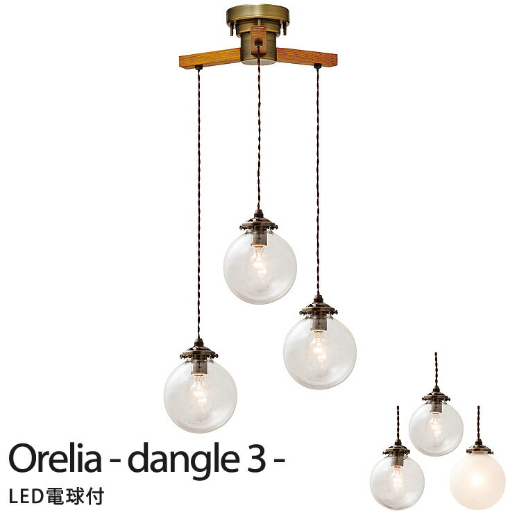 【先着3名様★30%OFFクーポン配布中】ペンダントライト 北欧 照明 アンティーク インターフォルム Orelia -dangle 3- オレリア ダングル3 LT-1963 BU CL FR MX E17 40W相当 小形LED電球(電球色) 3付 【IK】