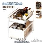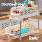 キッチンラック 収納ラック スライド式 引き出せる 引き出し式 多目的 2段 シンク下 メイク道具 収納棚 整理 整頓 スッキリ シンプル 便利 デッ