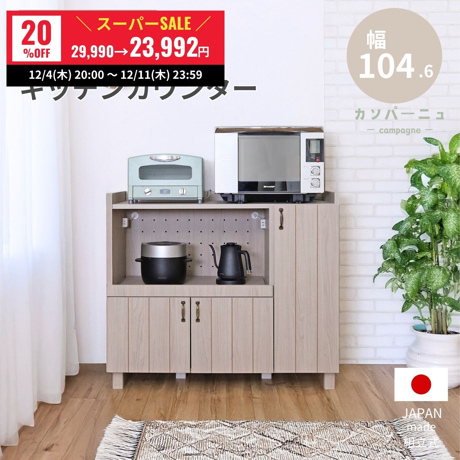 【スーパーSALE限定20%OFF】大人気!キッチンカウンター 幅105 高さ90 日本製 レンジ台 キャビネット キッチンラック 大型レンジ 食器棚 ストッカー 作業台 机 カウンター下 作業デスク 収納 スライド棚 おしゃれ 米びつ 炊飯器 キッチン 収納 北欧家具 cn-9010sr b-room