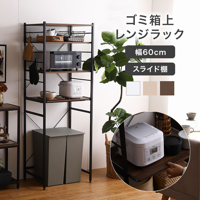 【期間限定10%OFF】レンジ台 ゴミ箱上収納 スリム 60幅 ゴミ箱上ラック ゴミ箱 上 収納ラック レンジラック キッチンラック レンジボード スライド棚 おしゃれ 北欧 ホワイト 白 ナチュラル ブラウン シンプル 大容量 木目調 ゴミ箱収納 電子レンジ台 隙間 キッチン収納