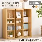 本棚 書棚 スライド式 幅90 シングル 4段 木製 コミックラック 漫画 書籍 収納 大容量 ブックシェルフ 木目 おしゃれ ブックラック 書斎棚