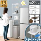 1年保証 キッチンラック スリム スライド棚 4段 幅32cm 高さ180cm 隙間収納 家電ラック キッチン収納 ゴミ箱上 炊飯器 可動棚 台所 省スペース 送料無料