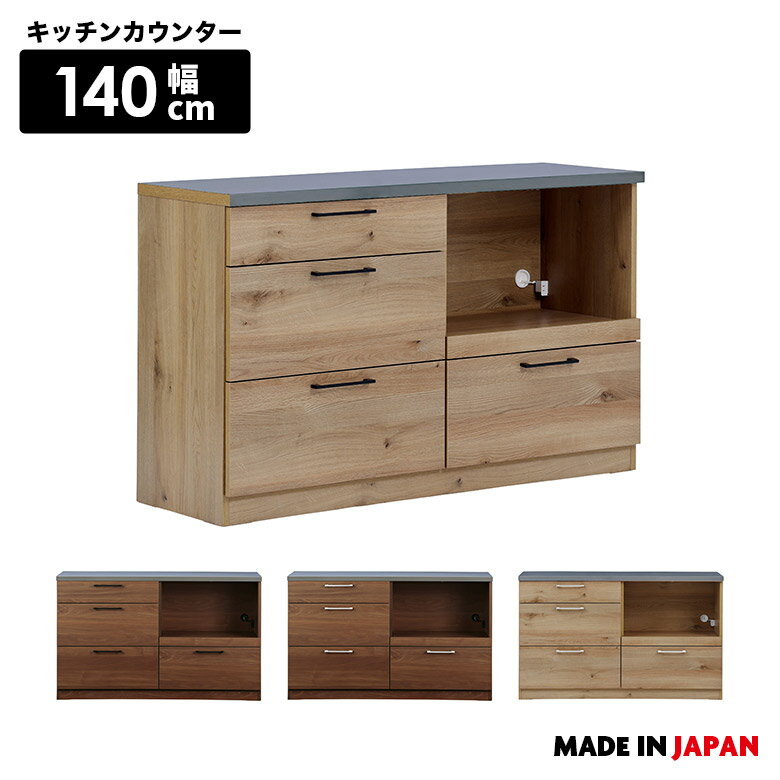 【全商品に使える10%offクーポンあり!!】 食器棚 ロータイプ キッチンカウンター 国産 幅140cm 引き出し レンジ台 ステンレス モイス付き おしゃれ 北欧 シンプル モダン レンジボード キッチン収納 日本製 キッチンボード スライド棚付き カップボード