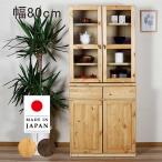 爆買 P17%〜 食器棚 完成品 幅80 パイン材 スリム ガラス 扉 天然木 木目 おしゃれ 日本製