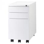 スリムワゴン 3段 ホワイト キャスター付き 鍵付き オフィス 収納 事務