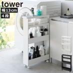 スリムワゴン おしゃれ キッチンワゴン キャスター付きワゴン 隙間収納 収納ワゴン 約幅15cm サイド 山崎実業 キャスター付きスリムワゴン タワー 4段 tower