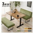萩原 ハギハラ ダイニング3点セット テーブル+ソファ+ベンチ/ライトブラウン/グリーン LT-3780LBR-47GR-3S(2652761)
