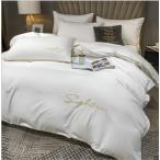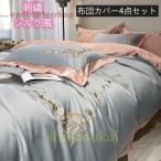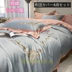 布団カバー4点セット 寝具カバー ベッドシーツ おしゃれ 掛け布団カバー 敷き布団カバー シンプル 冷感 夏用 シルク風 上品 フラットシーツ 刺繍 枕カバー