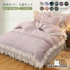 フリル付きベッドスカート 4点セット 寝具 洗える 布団カバー ベッドカバー シーツ 枕カバー リボン付き 切り替え 夏用 お姫様気分 姫系 可愛い