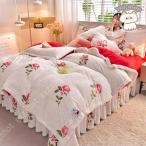 寝具カバーセット 4点セット花柄 姫系 綿 肌触り きれいめ 可愛い プレゼント ベッド用品 布団カバー 掛け布団カバー ベッドスカート 枕カバー