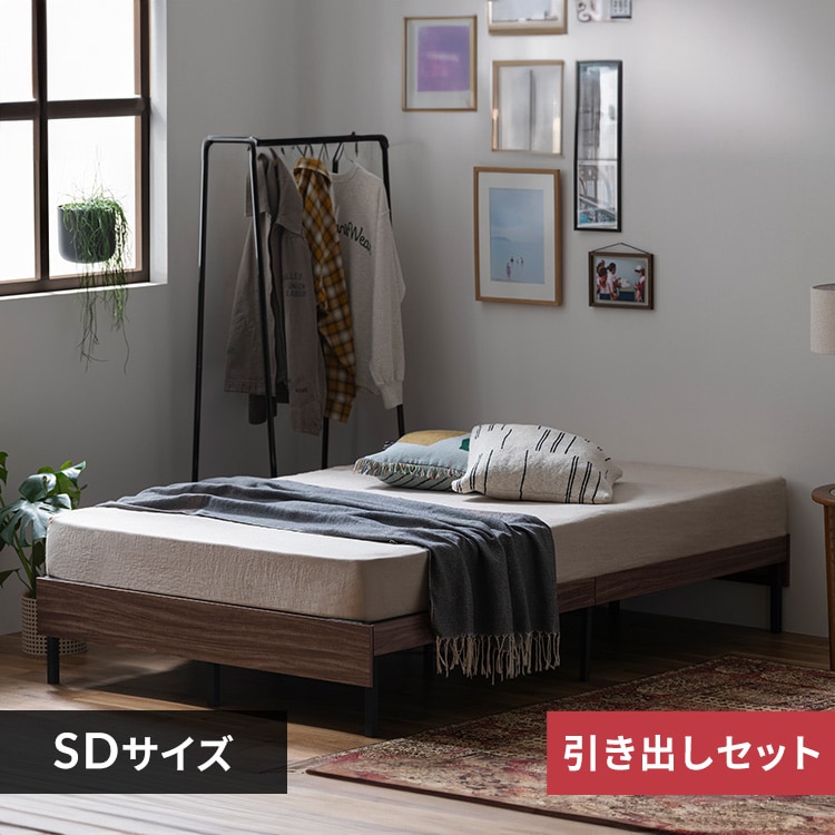 ウッドスチールベッド 引き出しセット セミダブル SBW01-SD/SB-WHK 全2色