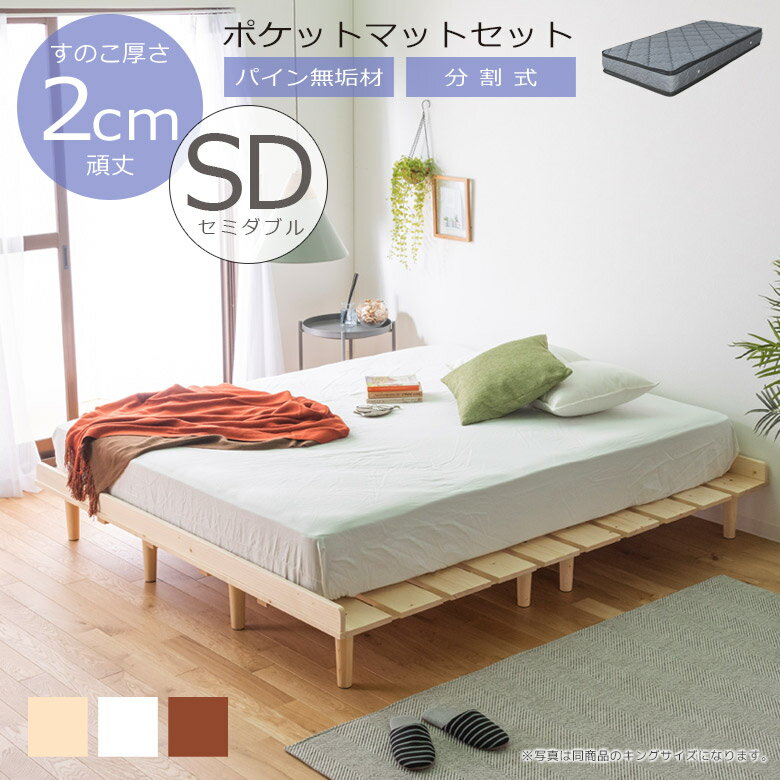 【全商品に使える10%offクーポンあり!!】 セミダブルベッド マットレス付 ベッドフレーム セミダブル 北欧 おしゃれ マットレスセット ベッド すのこベッド セット ベット ポケットコイル すのこ 通気性 パイン材 無垢材 シンプル ロータイプ 一人暮らし
