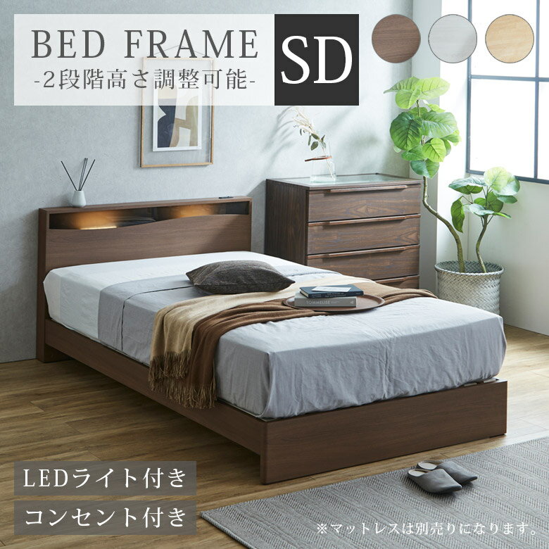【全商品に使える2%offクーポンあり!!】 セミダブルベッド フレームのみ ベッドフレーム 幅120cm おしゃれ 北欧 高さ調整 2段階 セミダブル ベッド コンセント付き LEDライト付き すのこ ホワイト ナチュラル ブラウン