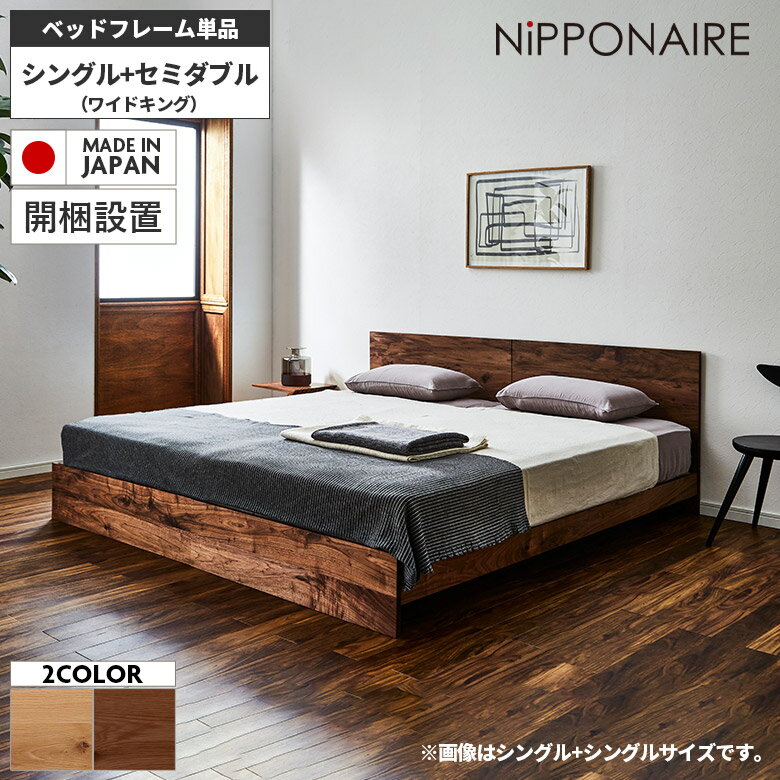 \全商品に使える11%offクーポンあり/ ワイドキング ベッド 北欧 おしゃれ フレームのみ シングル 2台セット 幅220cmベッド セミダブルベッド 国産 木製 無垢材 ツインベッド 木目通し 天然木 ベッドフレーム シングル 単品 並べる シンプル モダン 高級感